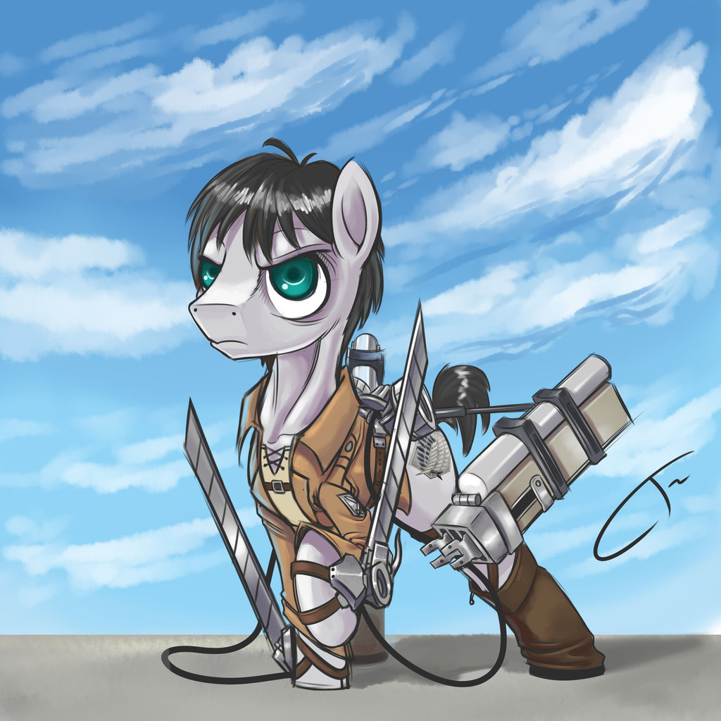 The sound of approaching hoofsteps and rattling metal alerted them to Twilight's presence as she walked in, garbed in a brown jacket, with two massive sheathes carrying both her normal blades, and multiple spares incase the blades shes currently using break.