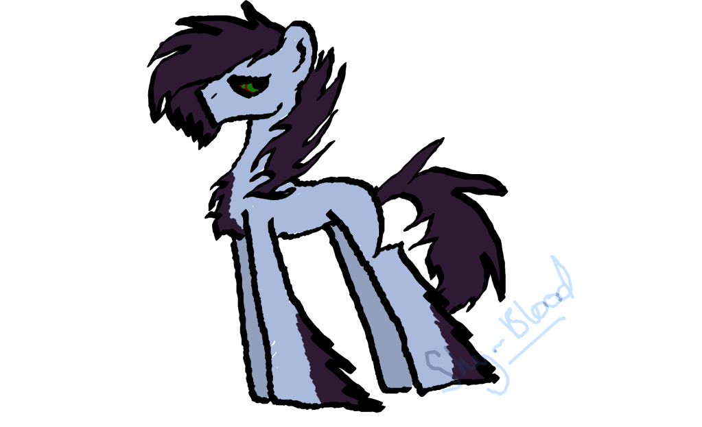 Personality:Hates other ponies tends to talk about very disturbing things quiet somewhat rude bipolar and very messed up (tells a lot about me him being my Ponysona and all)